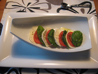 Vi gjorde förätten väldigt klassisk, kanske inte jätte roligt, men tomat och mozarella är alltid gott. Till det drack vi Loimer Riesling.